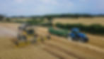 Whilst harvesting the tractor and trailer work alongside the combine, carting the produce back and forth to the stores at the farm